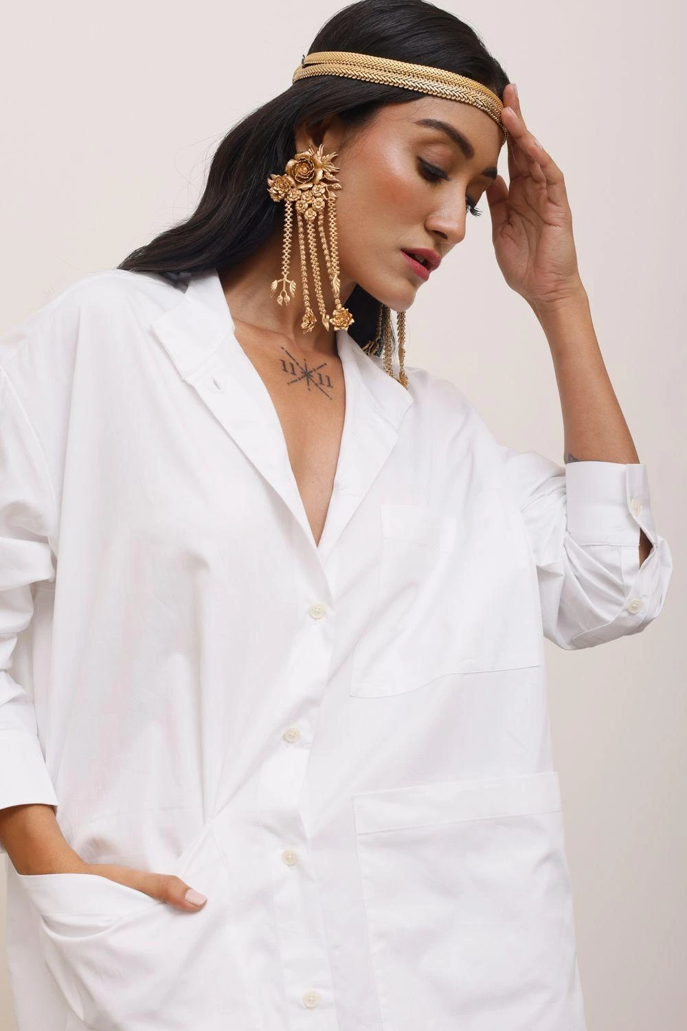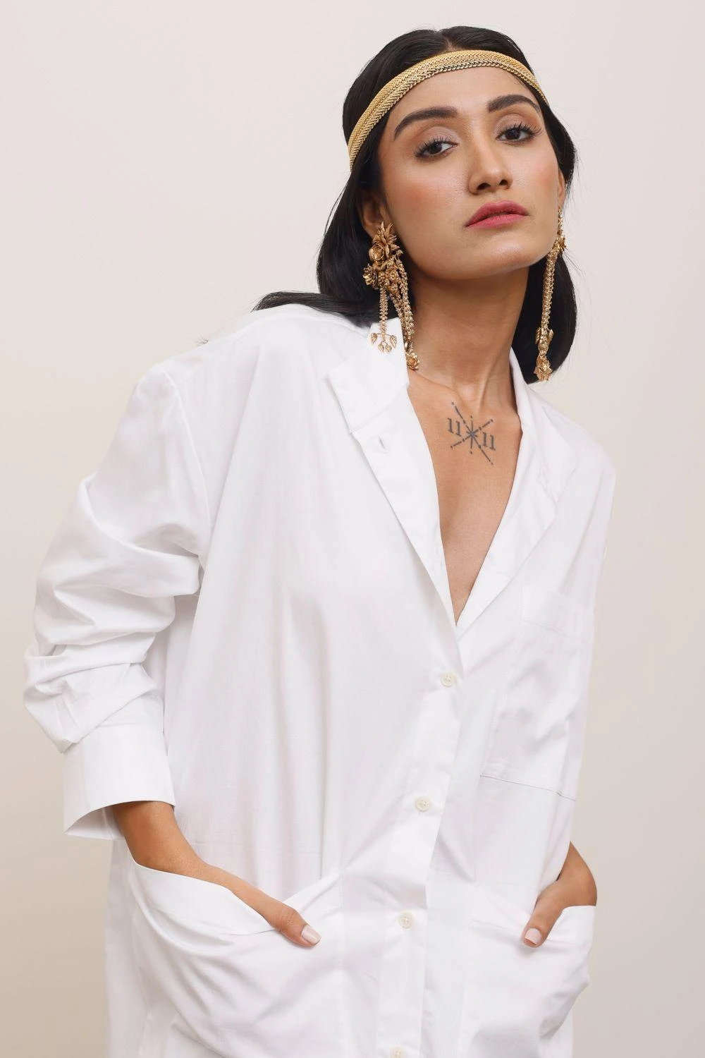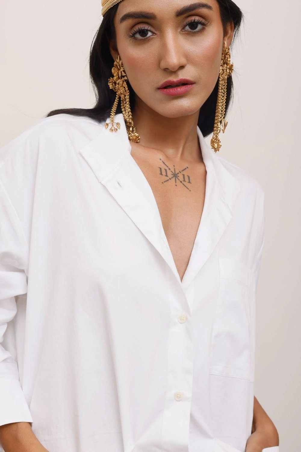 Embrace effortless style with this Oversized Cotton Shirt featuring captivating patch details. Meticulously crafted with attention to detail, this shirt effortlessly combines comfort and artistic charm.