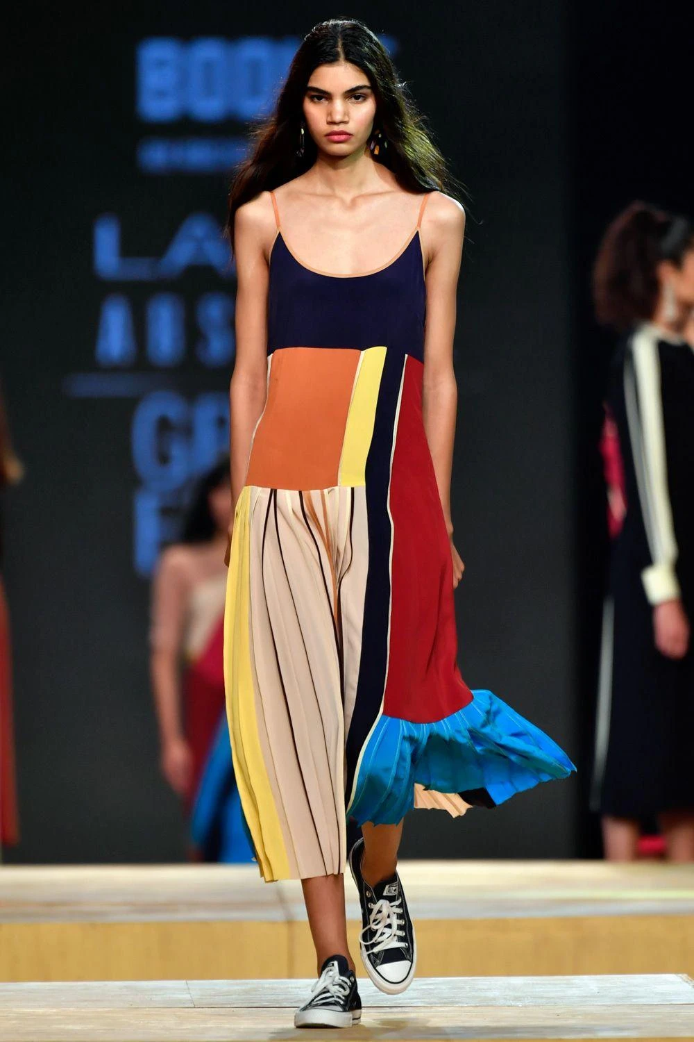 This colourblocked slip dress is set in an assortment of colours & patterns. It is cut in 100% silk crepe and features a scoop neck and asymmetric pleating details down the waist. Add a pair of chic gold hoops with this look.