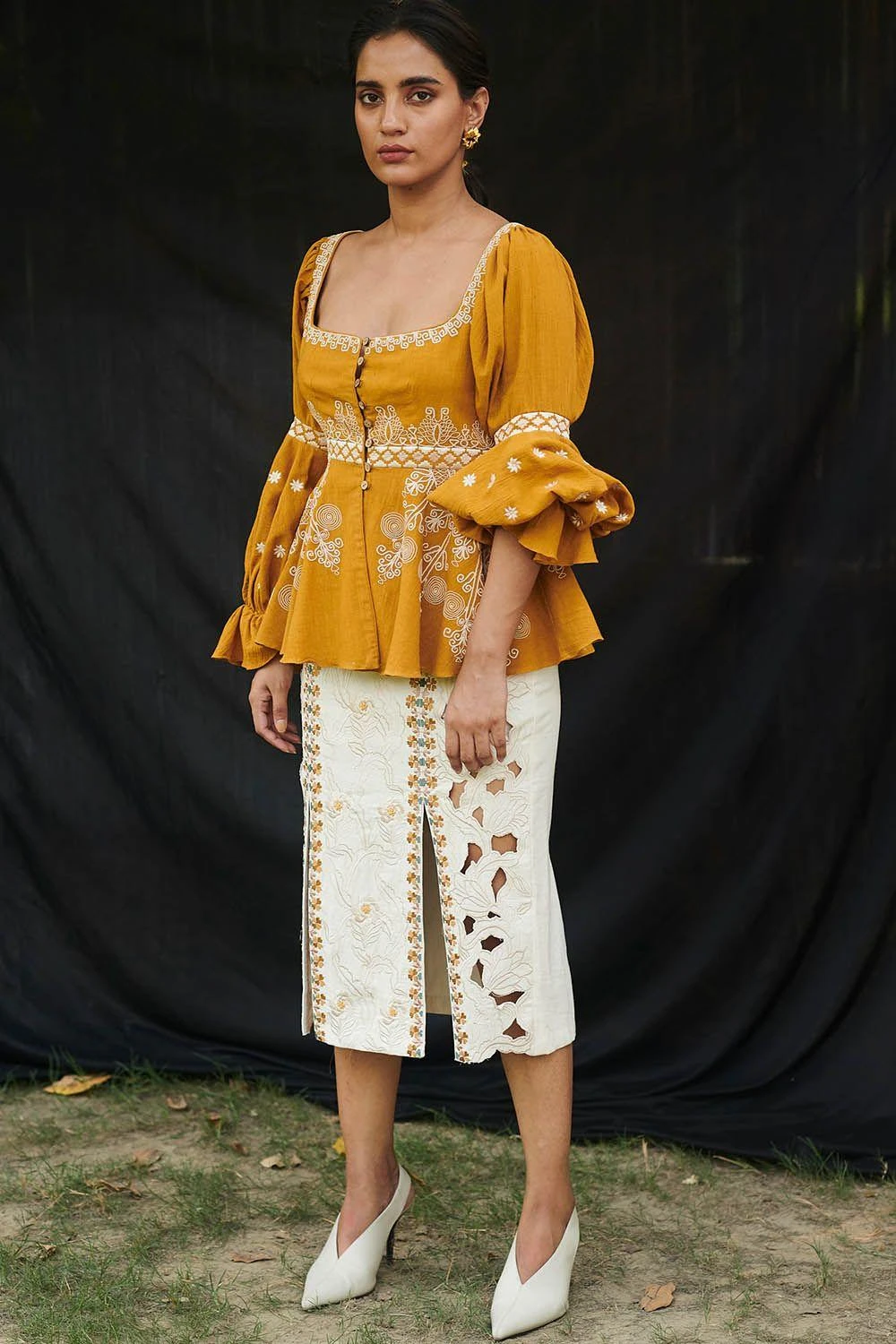 Chandrima Ivory Cotton Cutwork Embellished Skirt