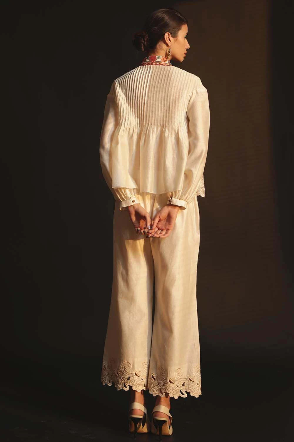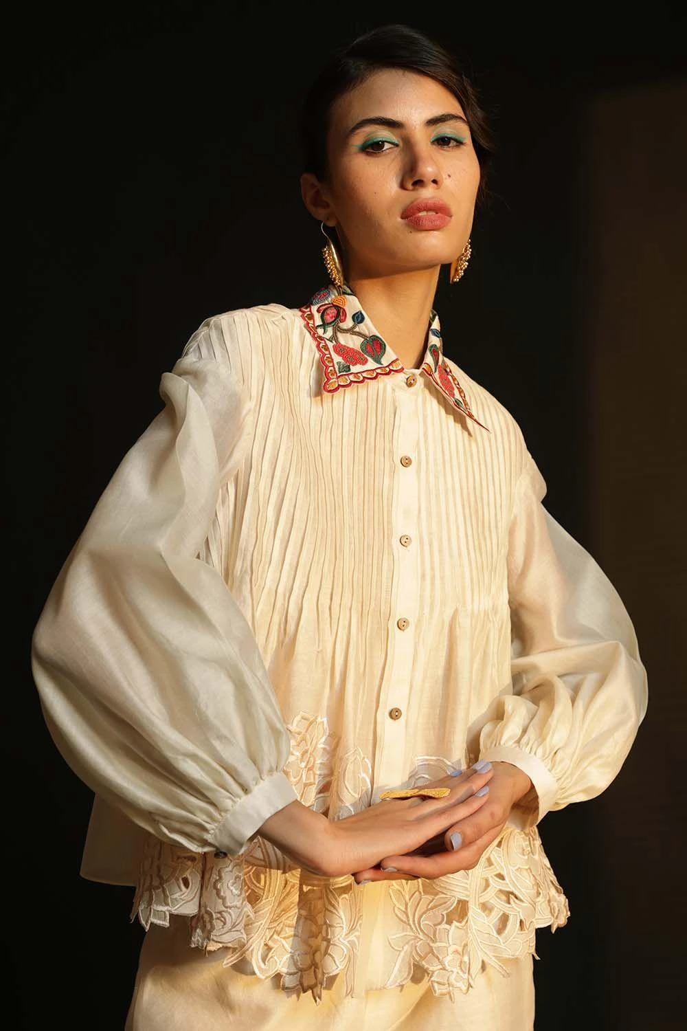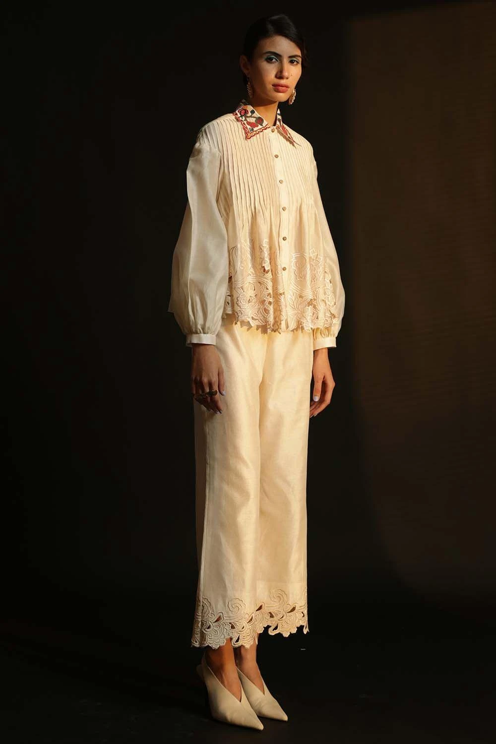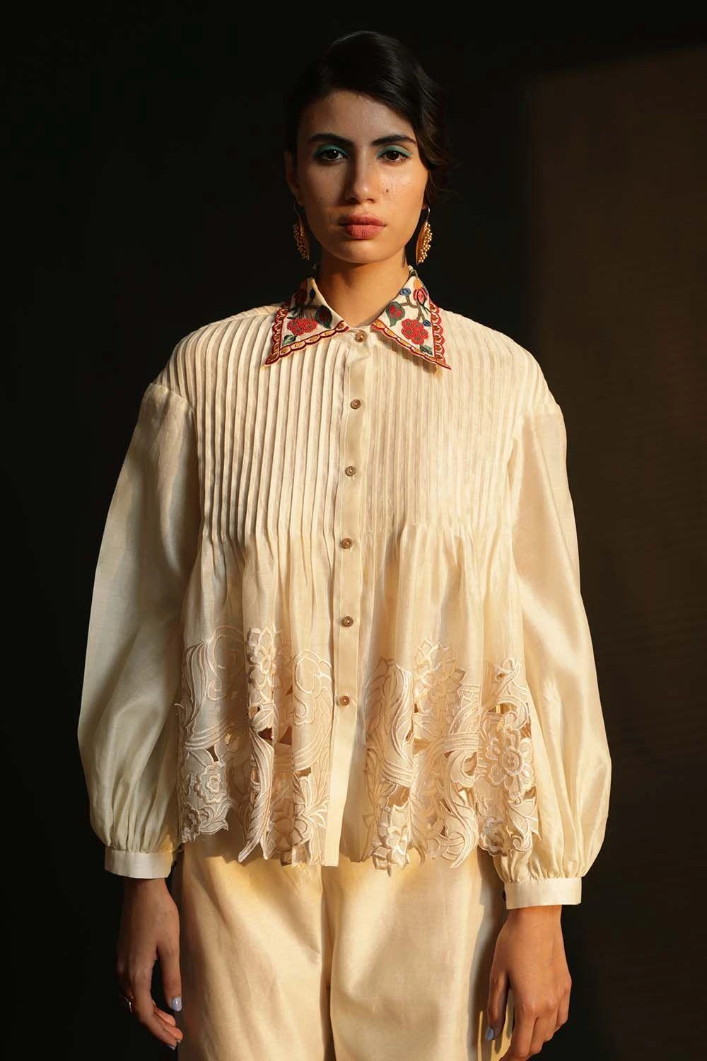 Chandrima Ivory Shirt With Embroidered Collar