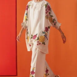 These narrow fit pants are cut in chanderi fabric in a deep navy hue and features scalloped hem. These can be paired with a coordinating navy kurta from the collection for an evening look.