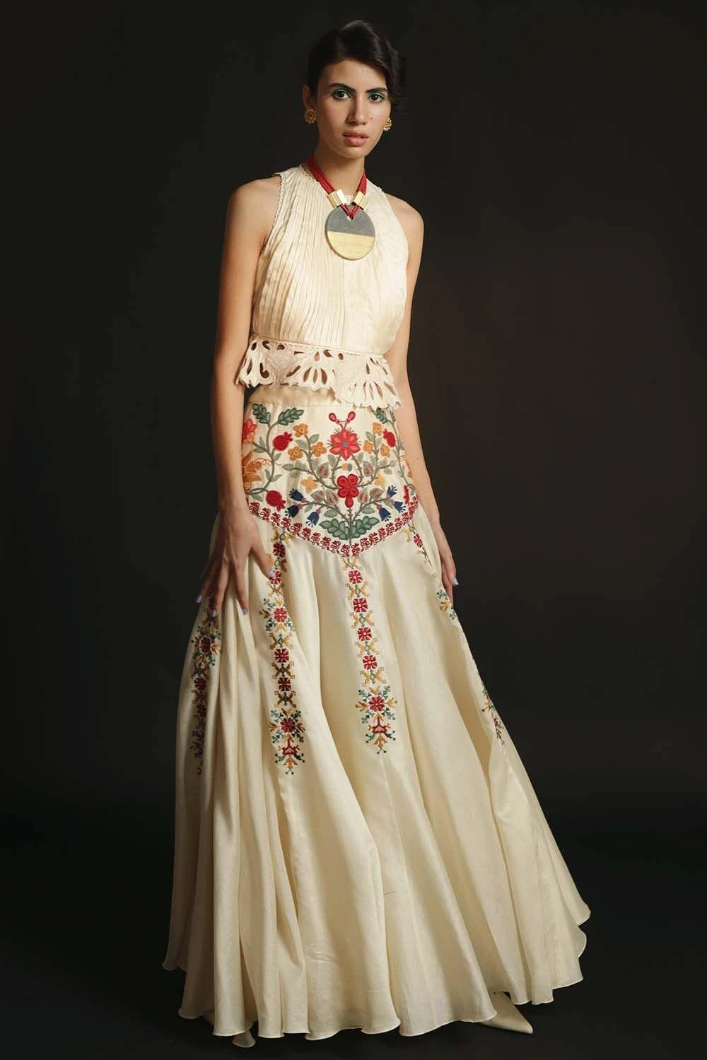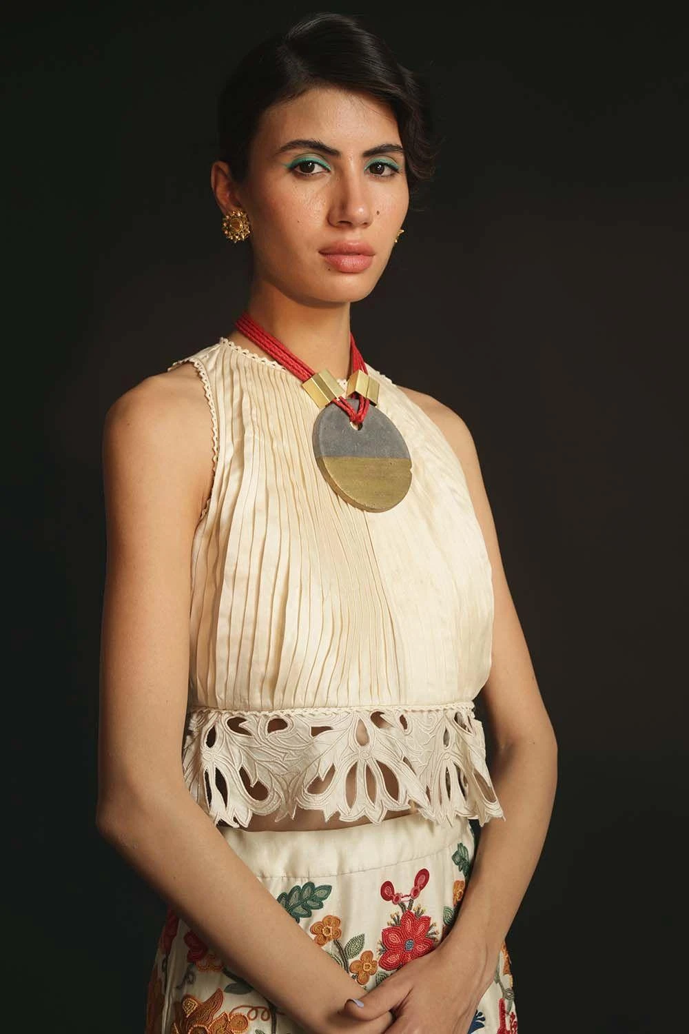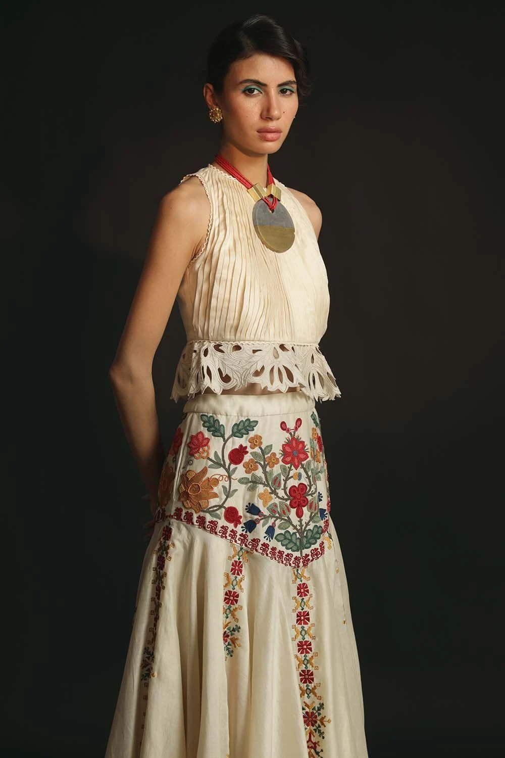 Chandrima Pleated Peplum Top With Cutwork Detail