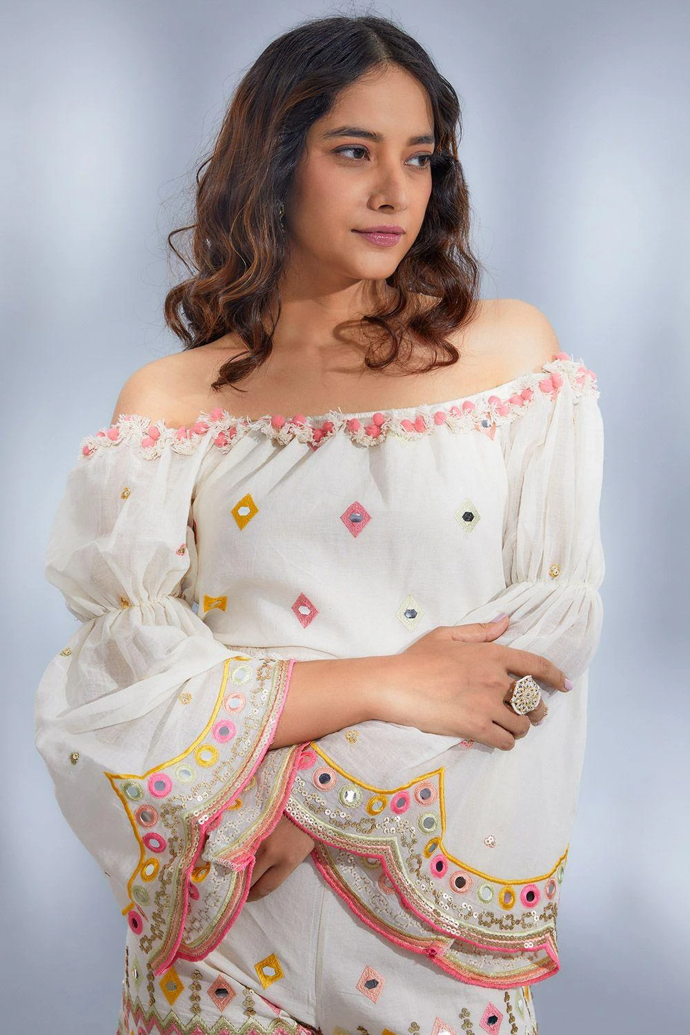 Experience the enchanting essence of spring with this Anaya Jumpsuit. Crafted from breathable organic cotton, this off-shoulder jumpsuit embodies freedom and style. The heavily embroidered belt adds a touch of elegance.