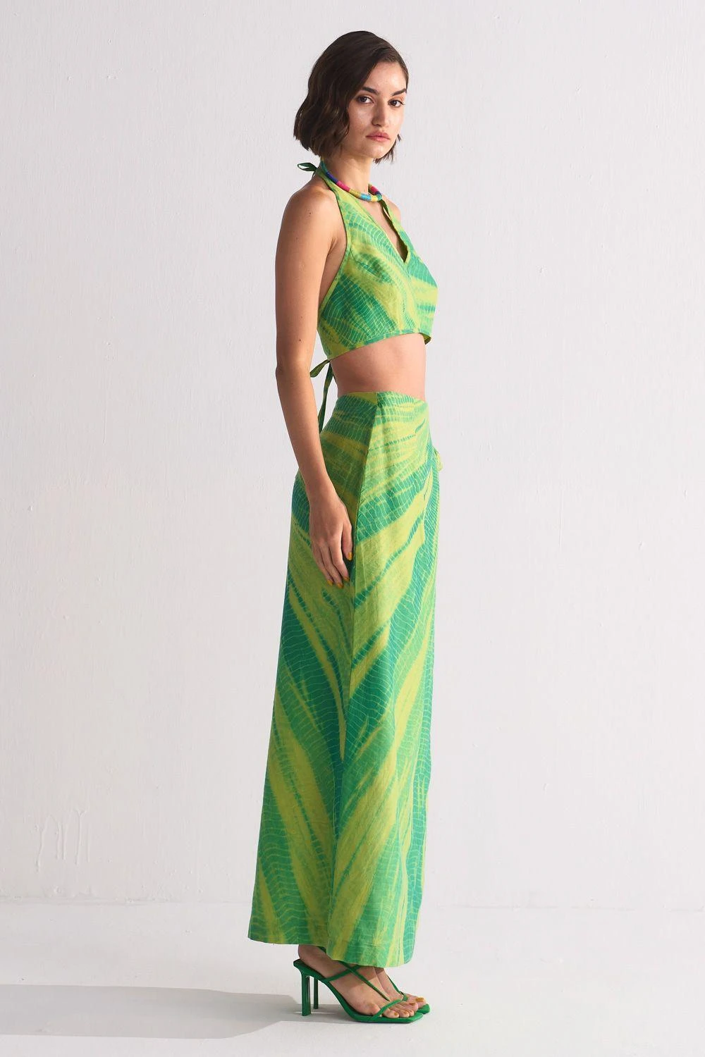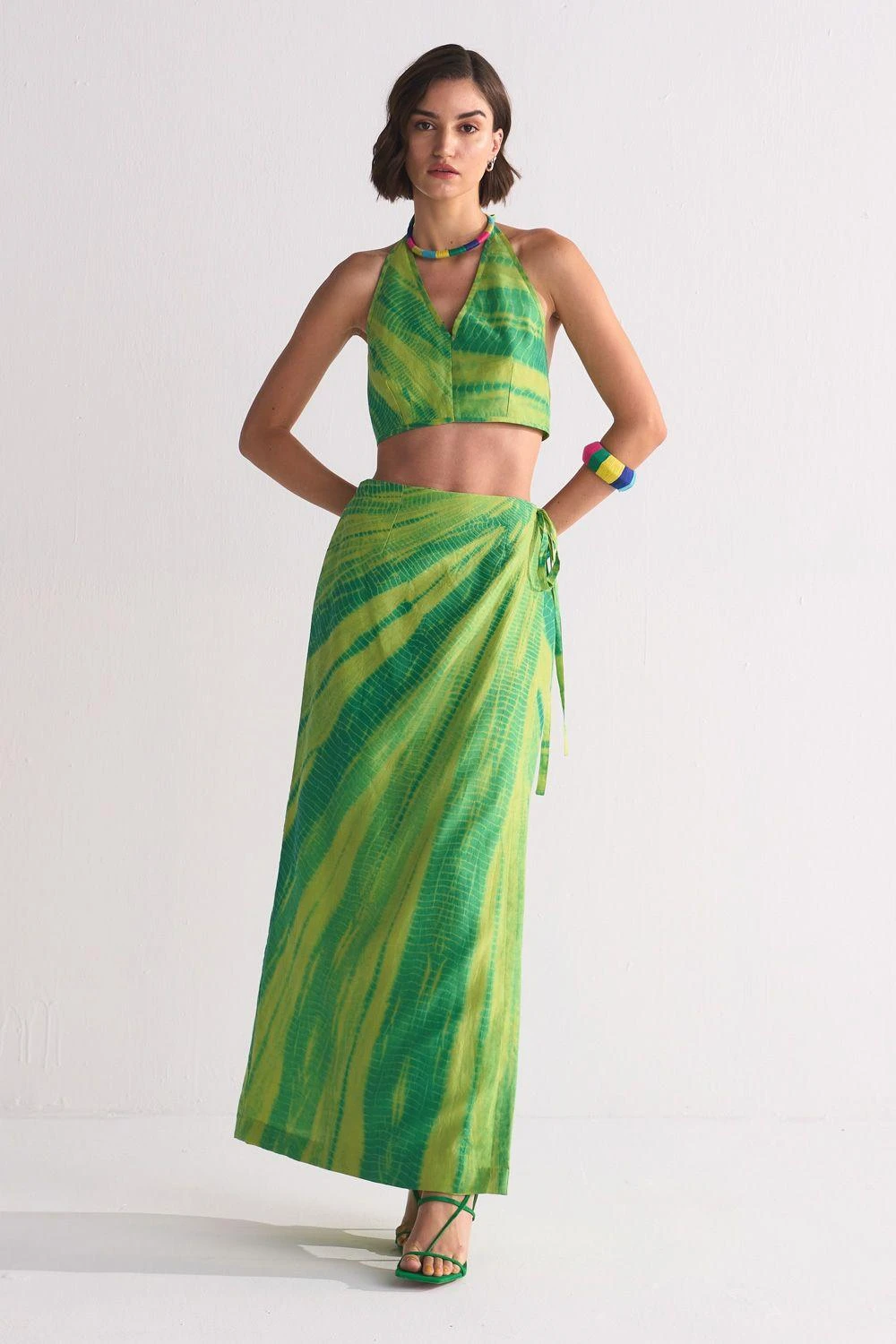 Embark upon a journey of enchantment with this captivating and carefree addition to your holiday wardrobe. Fashioned with exquisite attention to detail, this skirt has a diagonal dyed pattern all over.