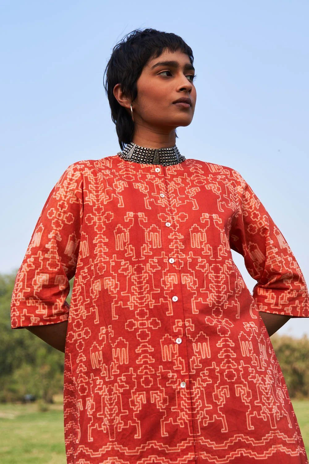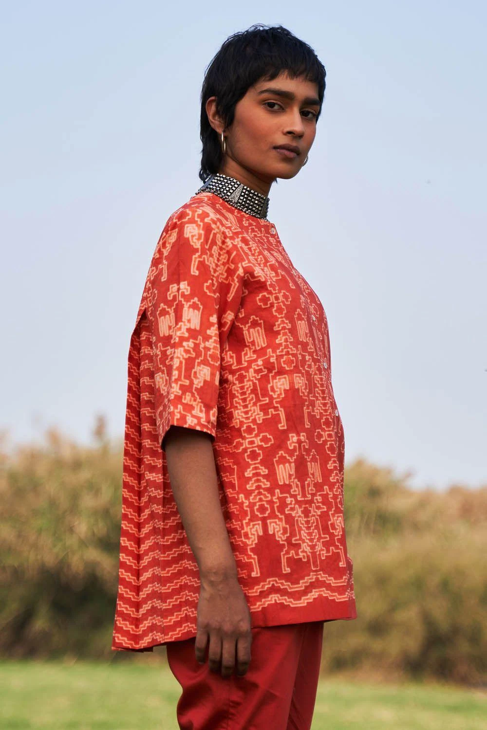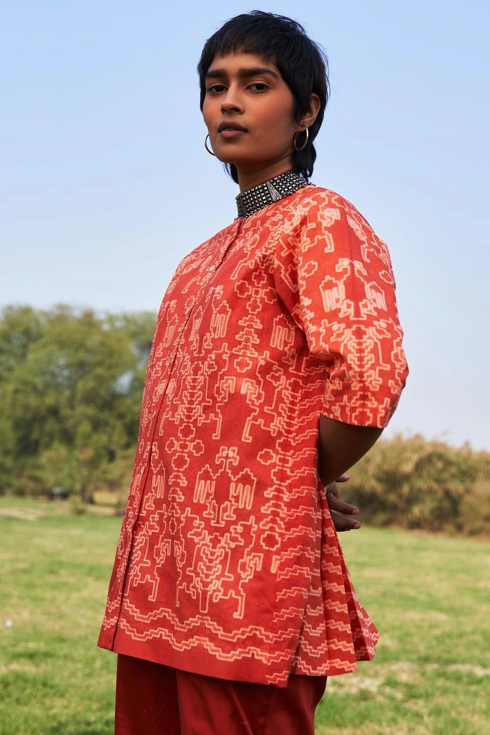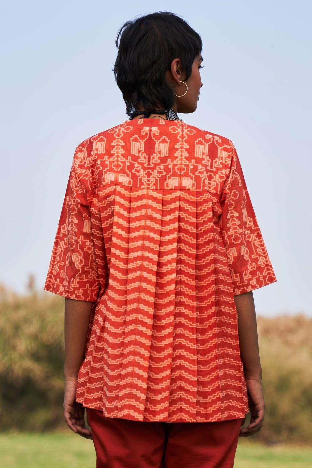 Ikai Rust Shibori Dyed Cotton Top