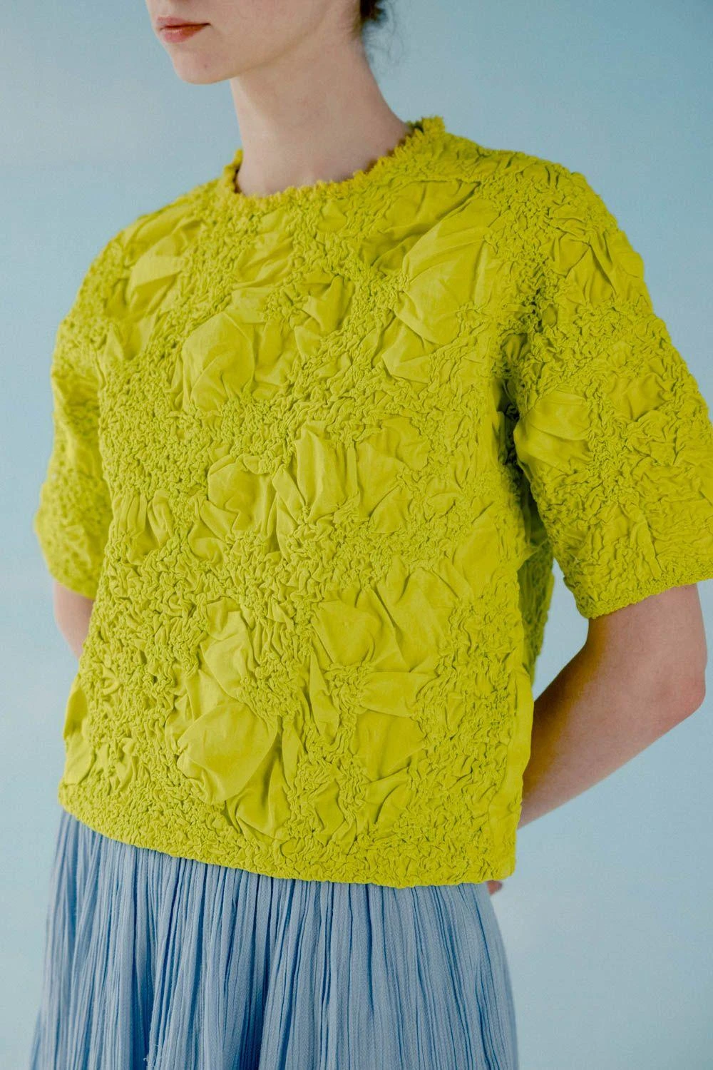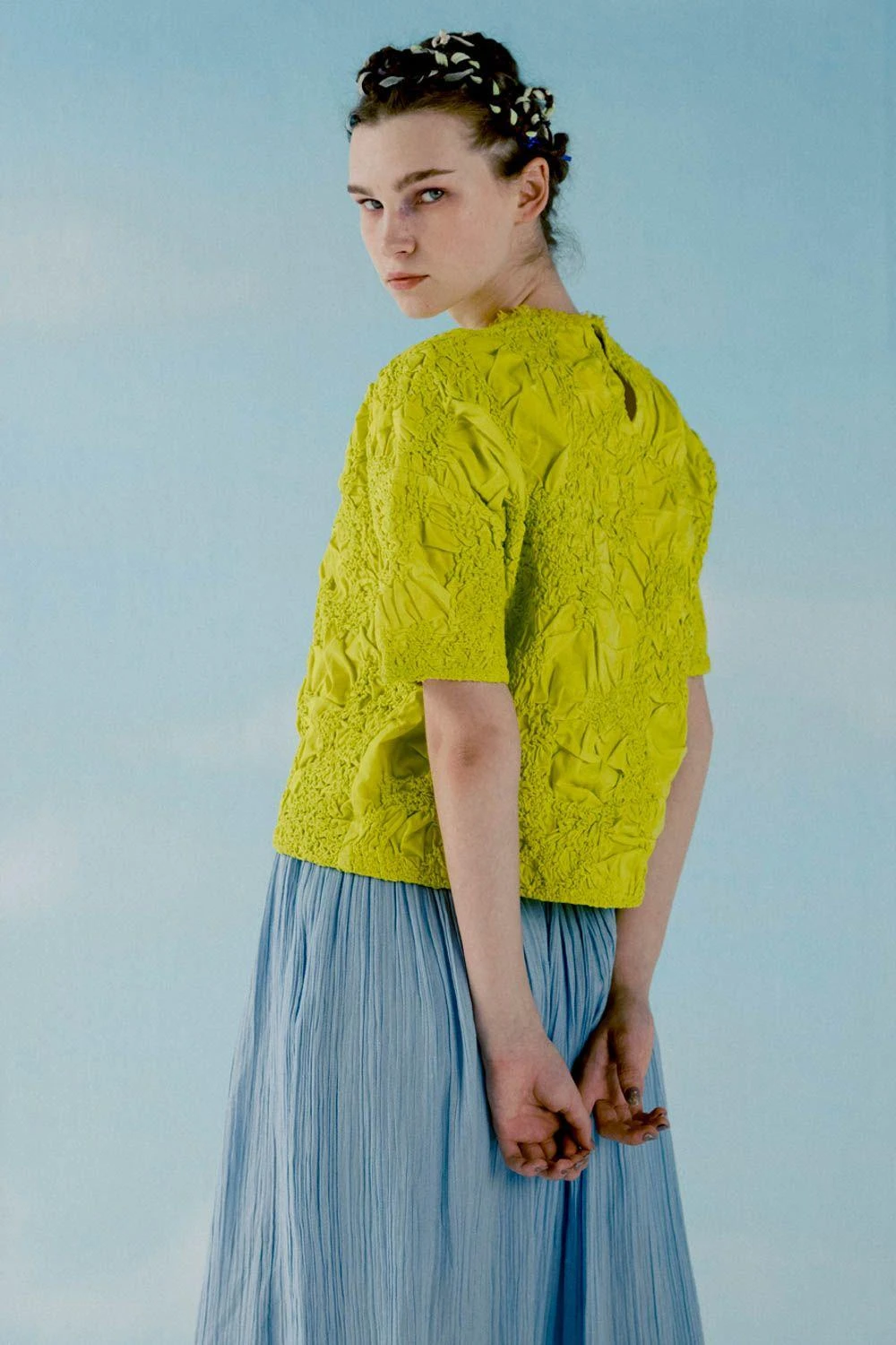 From your work desk to the brunch table & from lounging at home to catching flights, you can always count on this top. Cut in poplin, this top smocked details all over. Style this top with a draped skirt to complete the set.