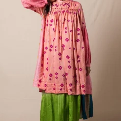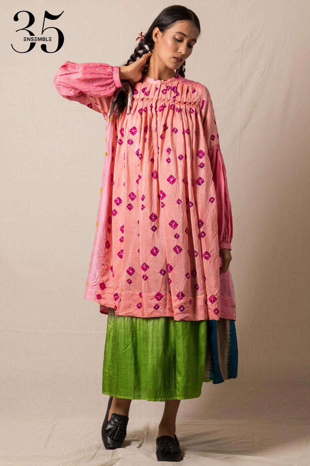 A yearlong celebration of its 35th anniversary telling the story of modern Indian fashion. This beige gathered midi skirt is made in 100% cotton and enhanced with clamp bandhani. This beautiful piece can be styled for a sunny day out.