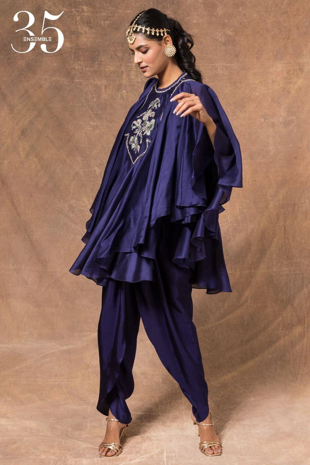 A yearlong celebration of its 35th anniversary telling the story of modern Indian fashion. Featuring a pair of dhoti pants in luxurious satin silk fabric. It can be teamed up with a kurta, crop top or a cape from the collection.