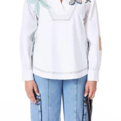 This relaxed fit white shirt is everything you need. It is cut in comfortable cotton and elevated with blooming floral faux leather applique details. You can style it with a pair of denims & gold hoops for a day out.