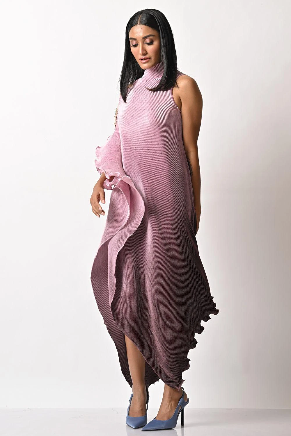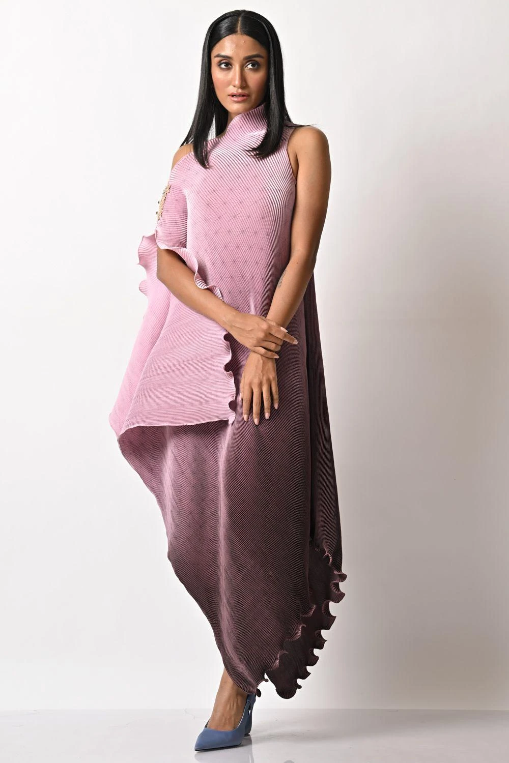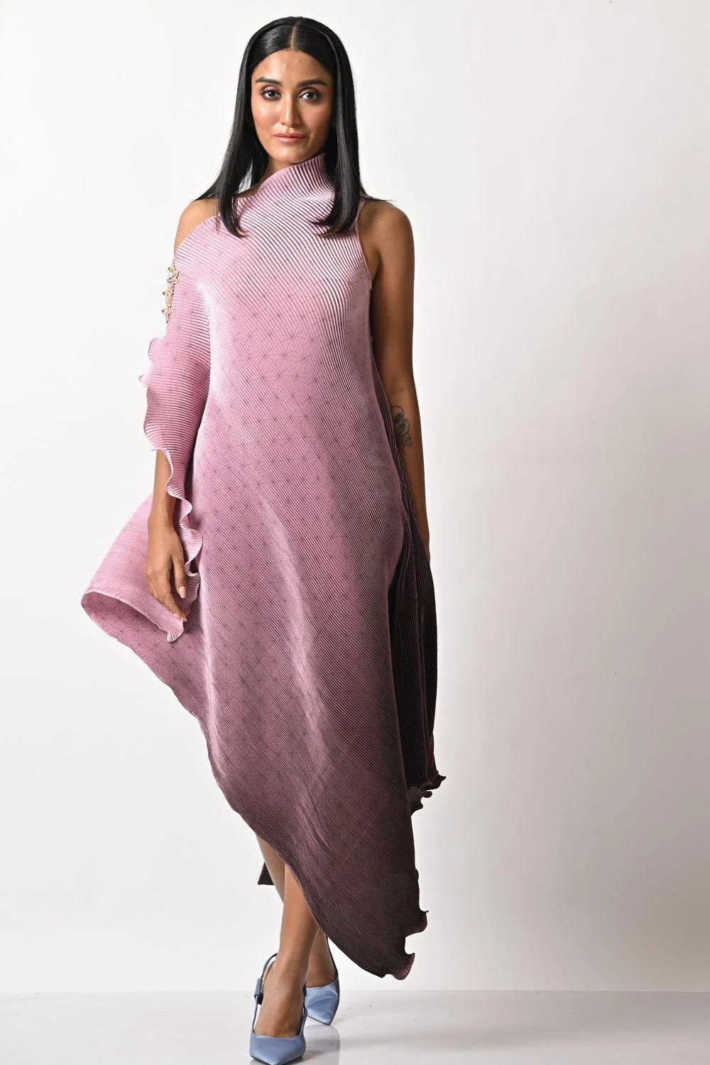 Switch your mainstream occasion wear for this one of a kind lavender ombre pleated draped dress. It is cut in polyester mix and features an embroidered motif. Style it with a pair of heels and a clutch for a sundowner.
