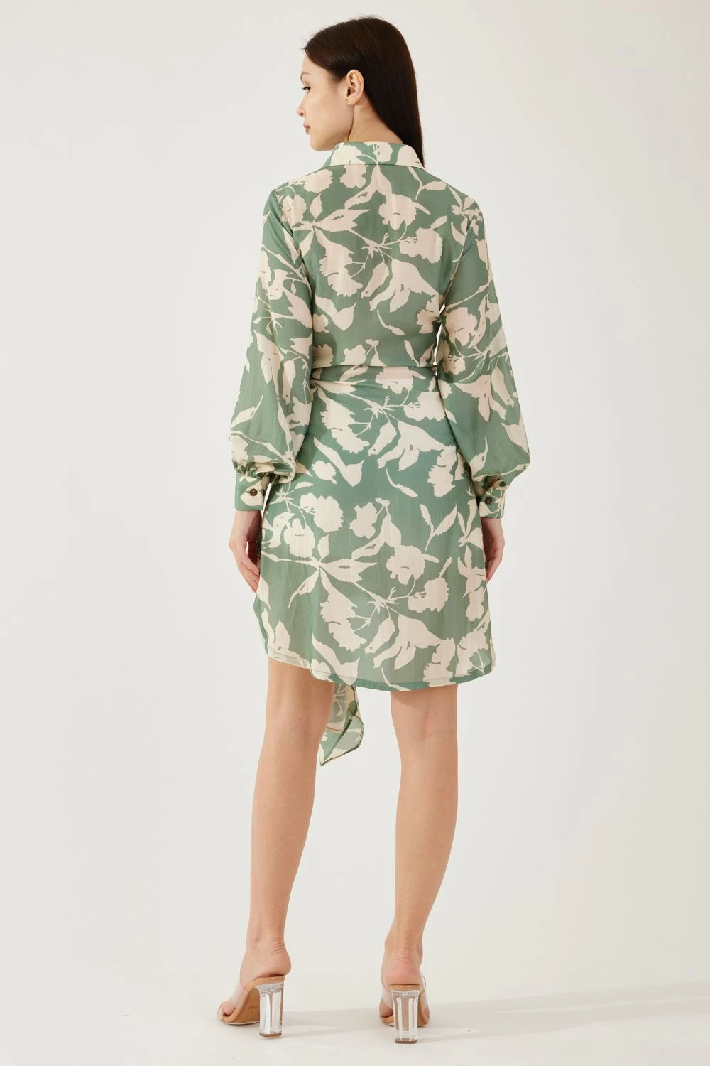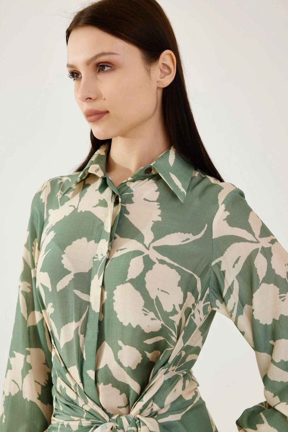 Indulge in the beauty of this beige floral wrap shirt. With its captivating floral print and stylish wrap design, it exudes effortless elegance. This shirt is a perfect blend of grace and style, making it a versatile addition to your wardrobe.