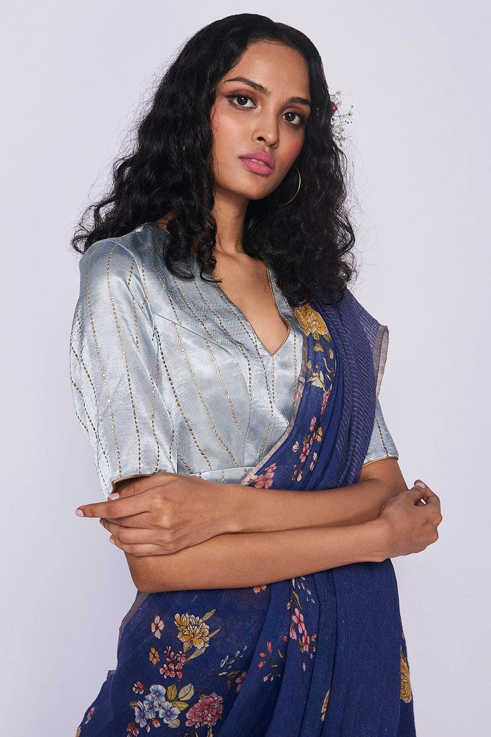 Nadiya Paar Blue Lakir Satin Blouse