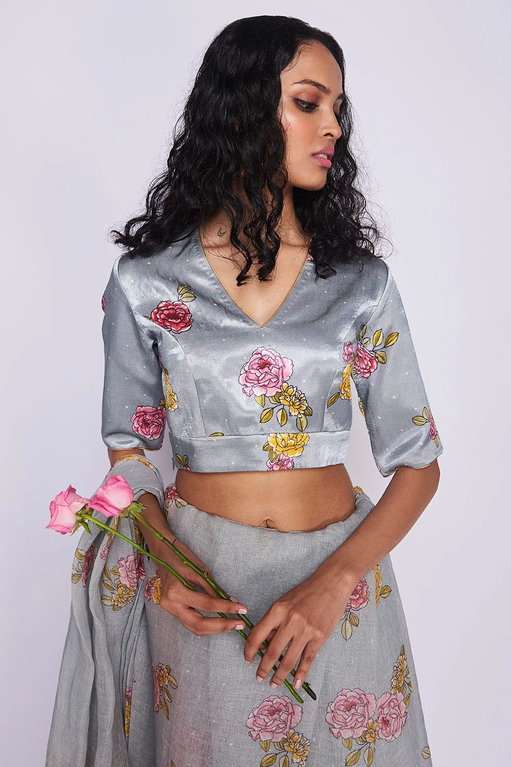 Nadiya Paar Blue Rosette Satin Blouse
