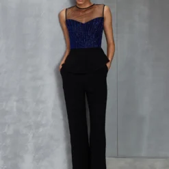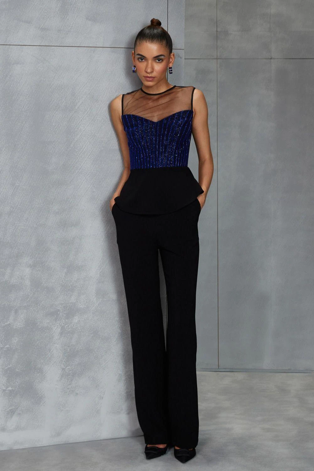 Elevate your style with the Black Metallic Scallop Peplum Top. Effortlessly chic, the embellished design adds a touch of drama to this modern ensemble, perfect for making a statement.
