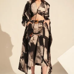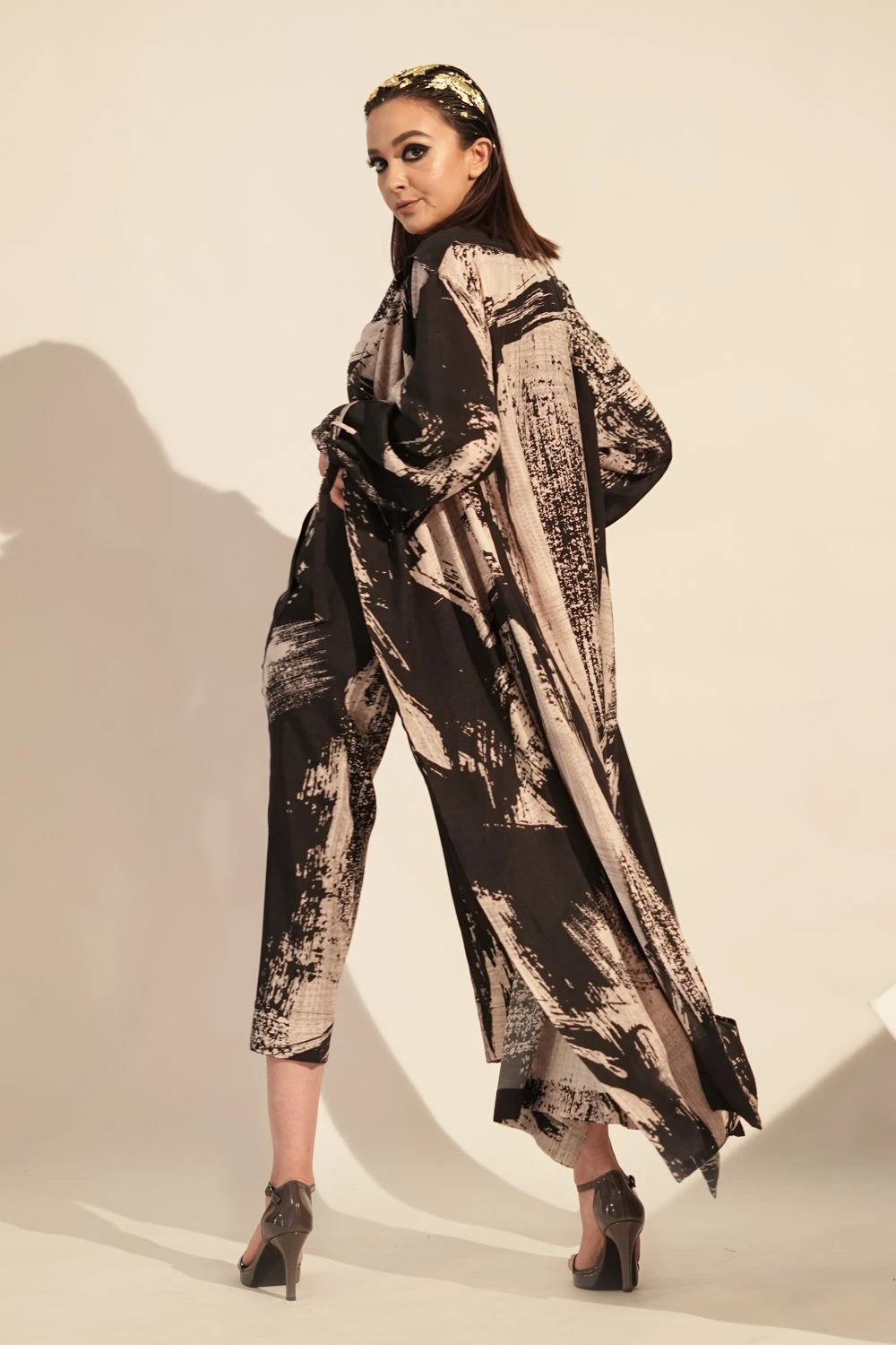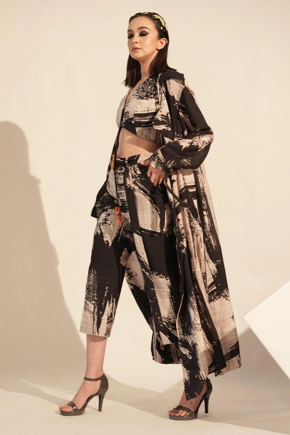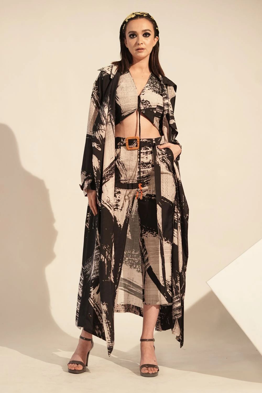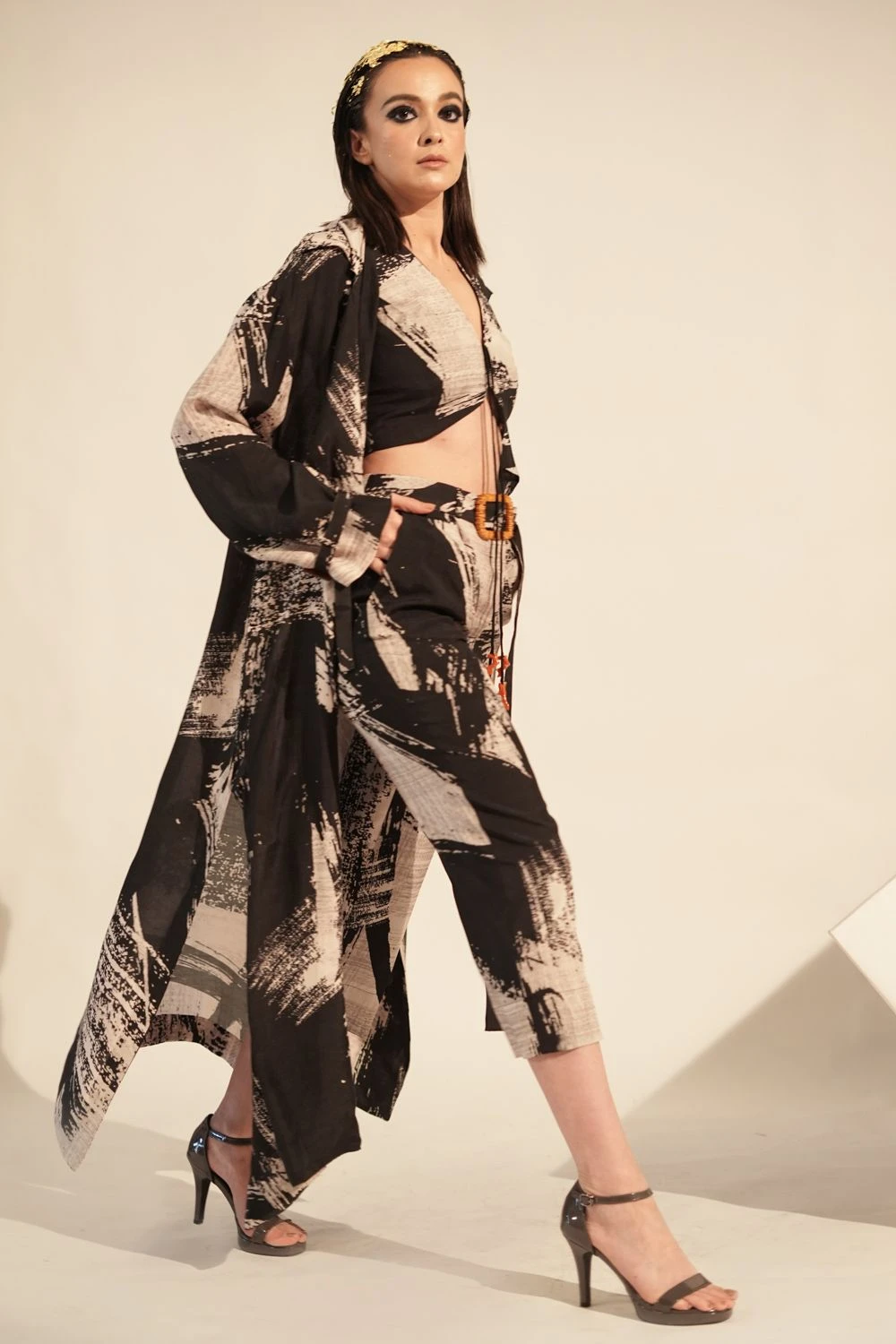 Elevate your style with this black & white stroke print pant featuring a stylish belt. A contemporary piece that exudes elegance and complements your unique style effortlessly.