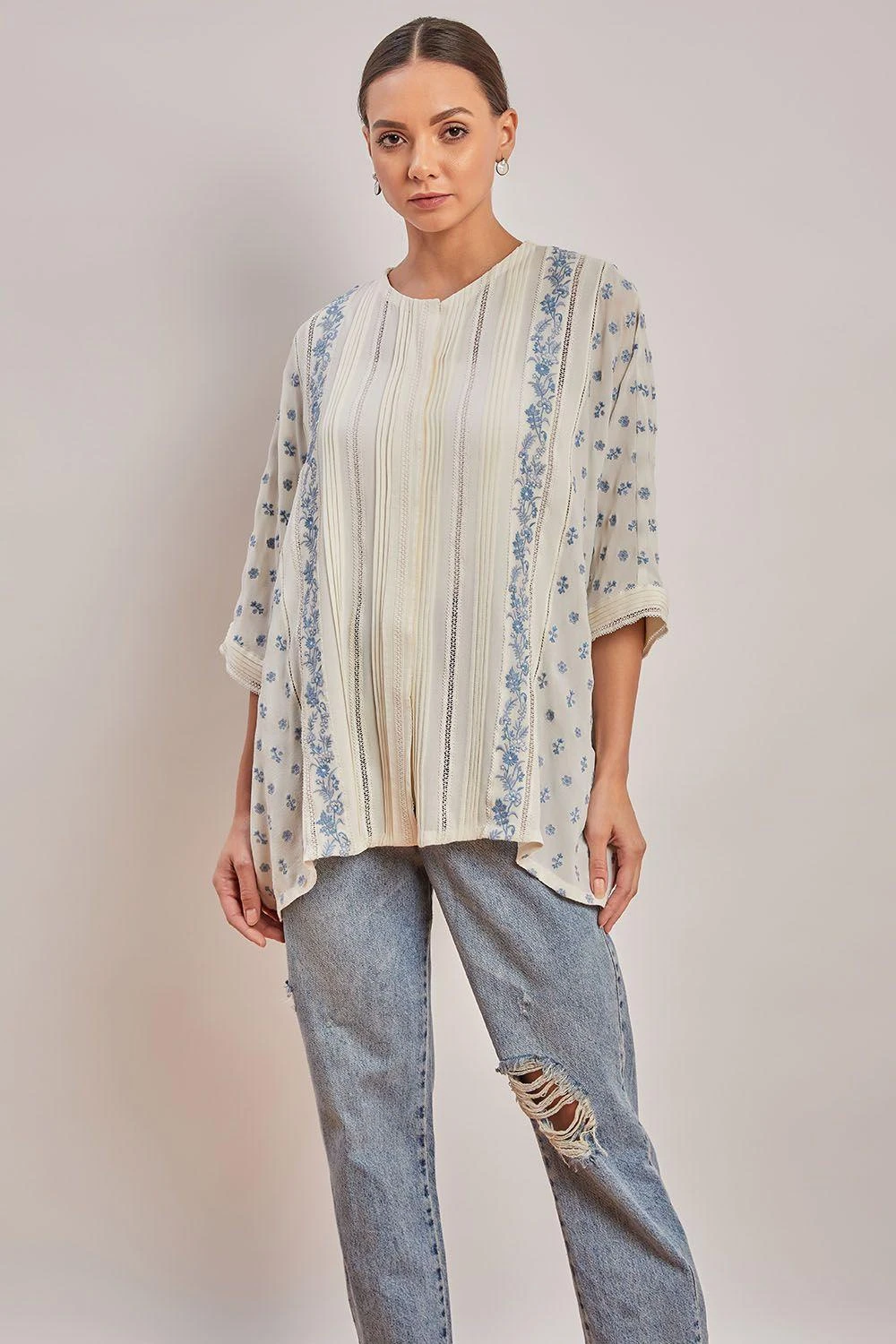 PATINE Hand Embroidered Chikankari Top With Lace Details