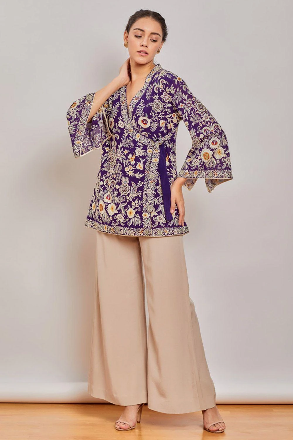 PATINE Purple Parsi Gara Embroidered Wrap Top