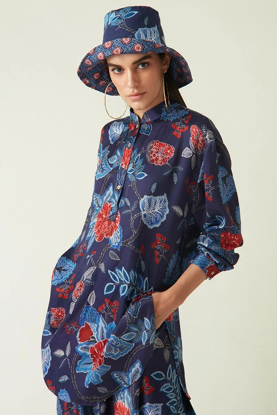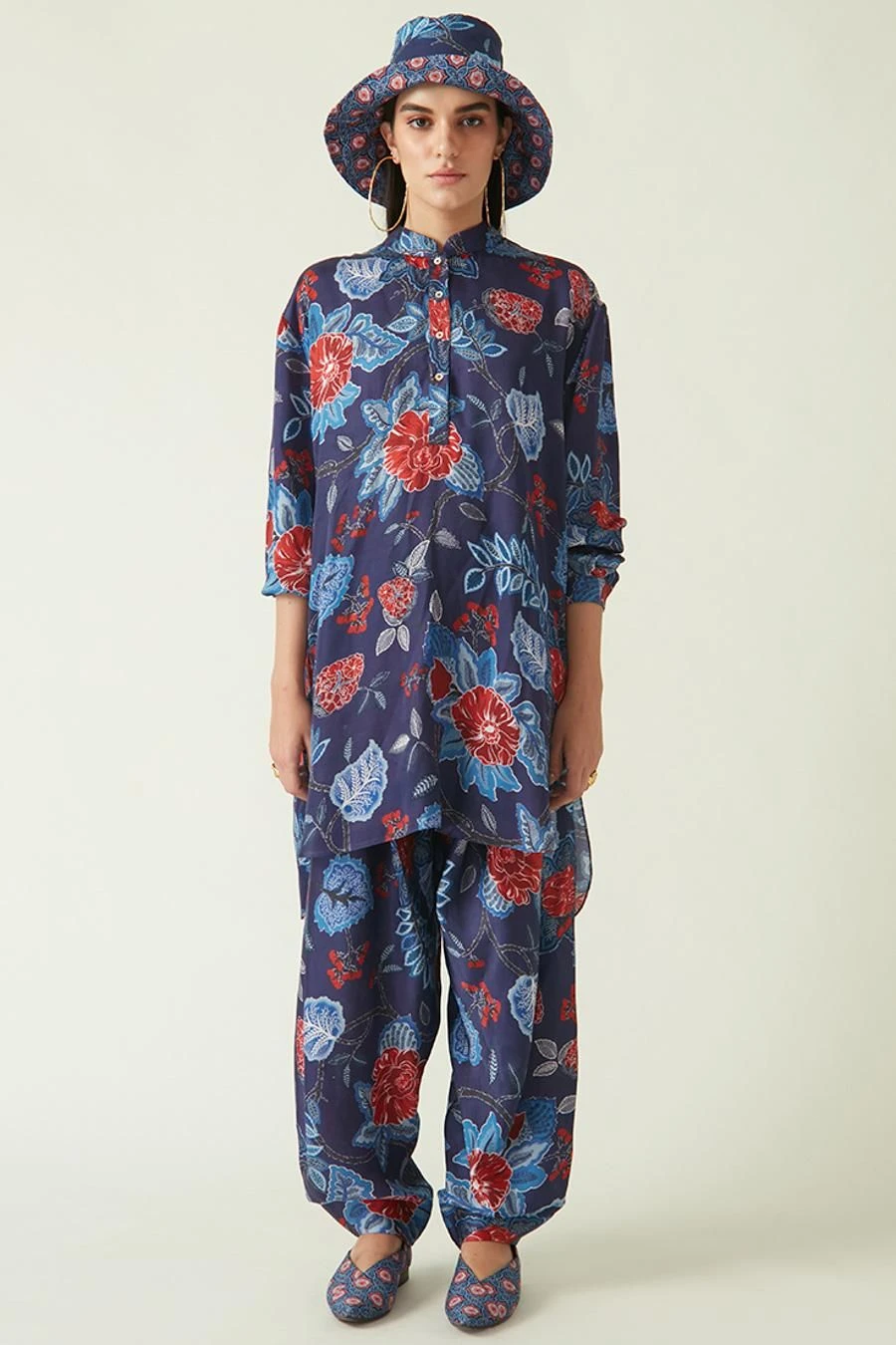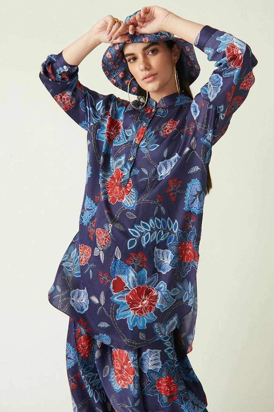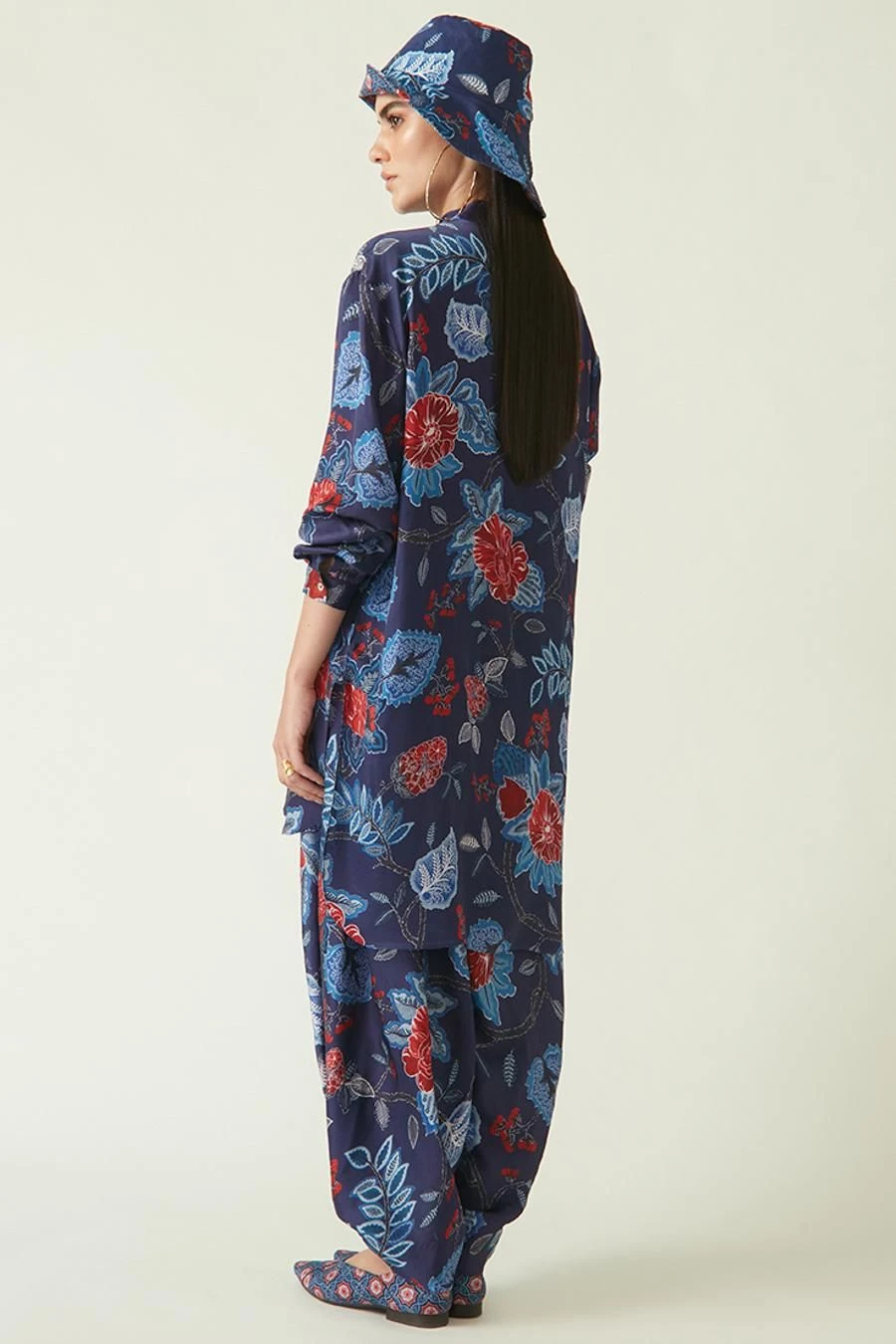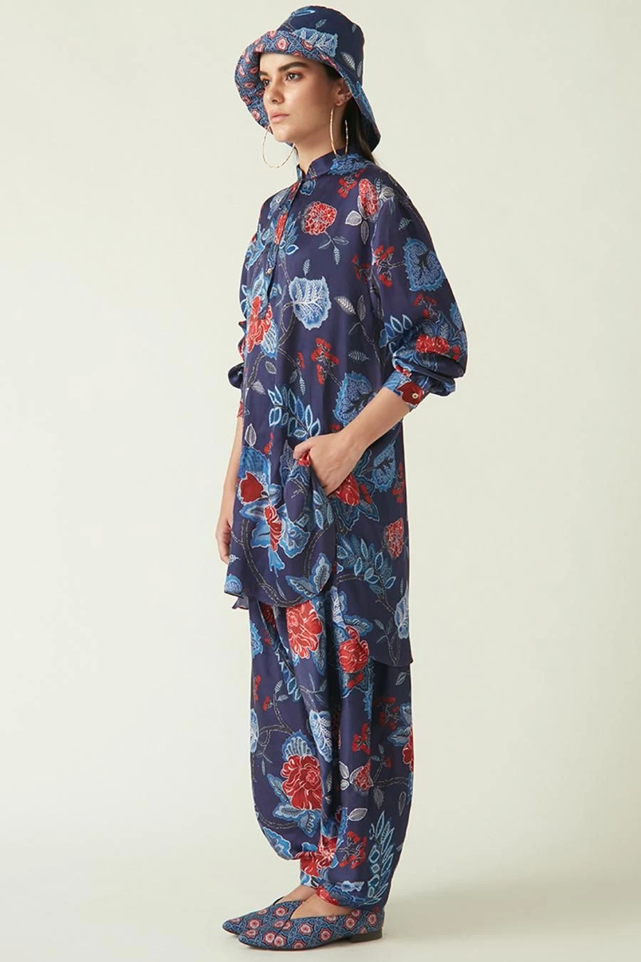 Crafted in modal satin, this printed cowl salwar comes with an abstract print. Style it with the Navy red sikula printed tunic from the collection along with a pair of open sandals for an effortlessly stylish look.