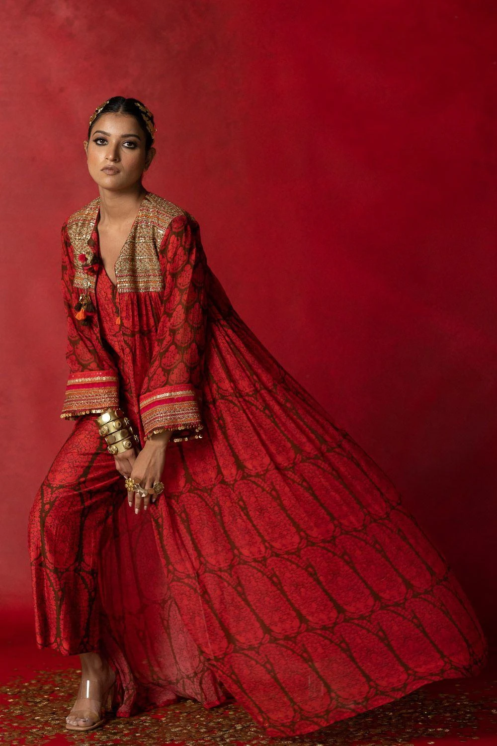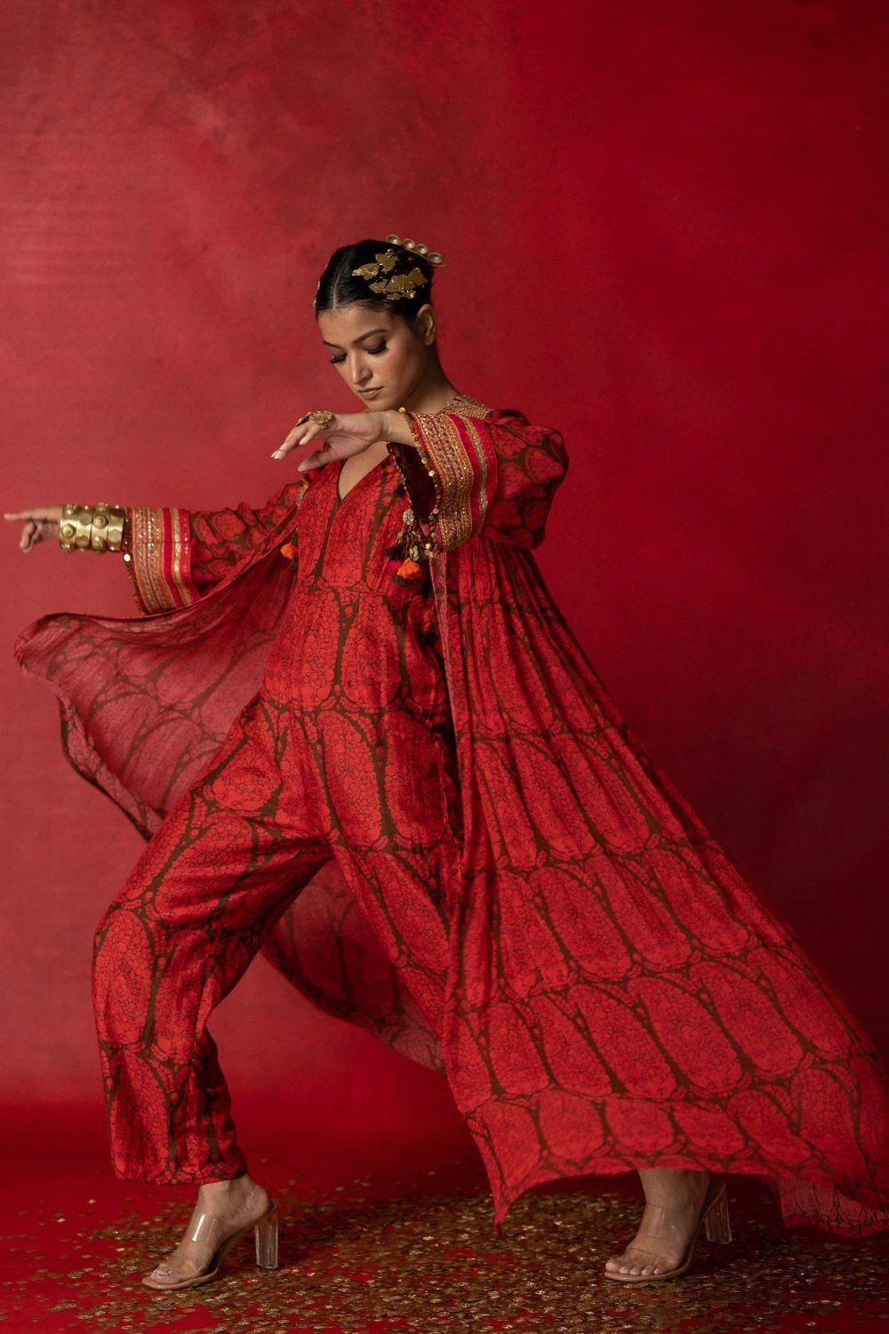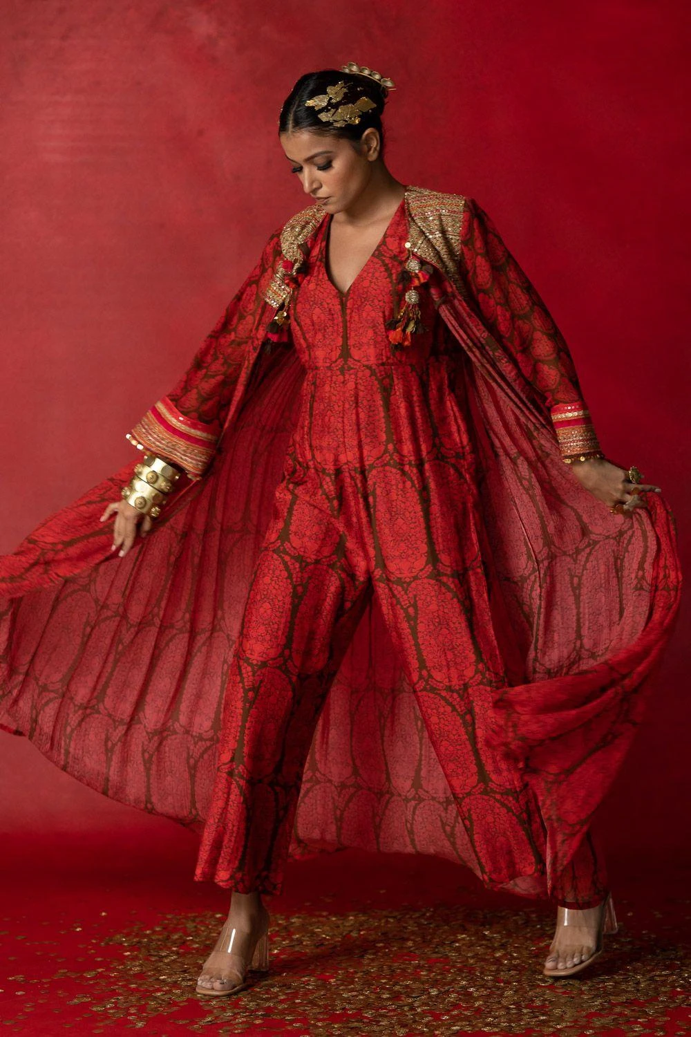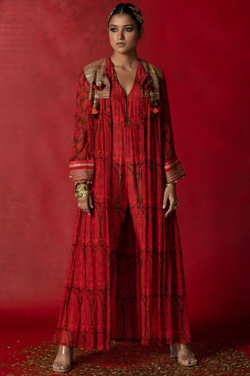 Give your festive closet a vibrant, artisan aesthetic with this jumpsuit. Crafted in cotton silk, this jumpsuit features a paisley print all over. Style it with a pair of statement earrings to complete the look.