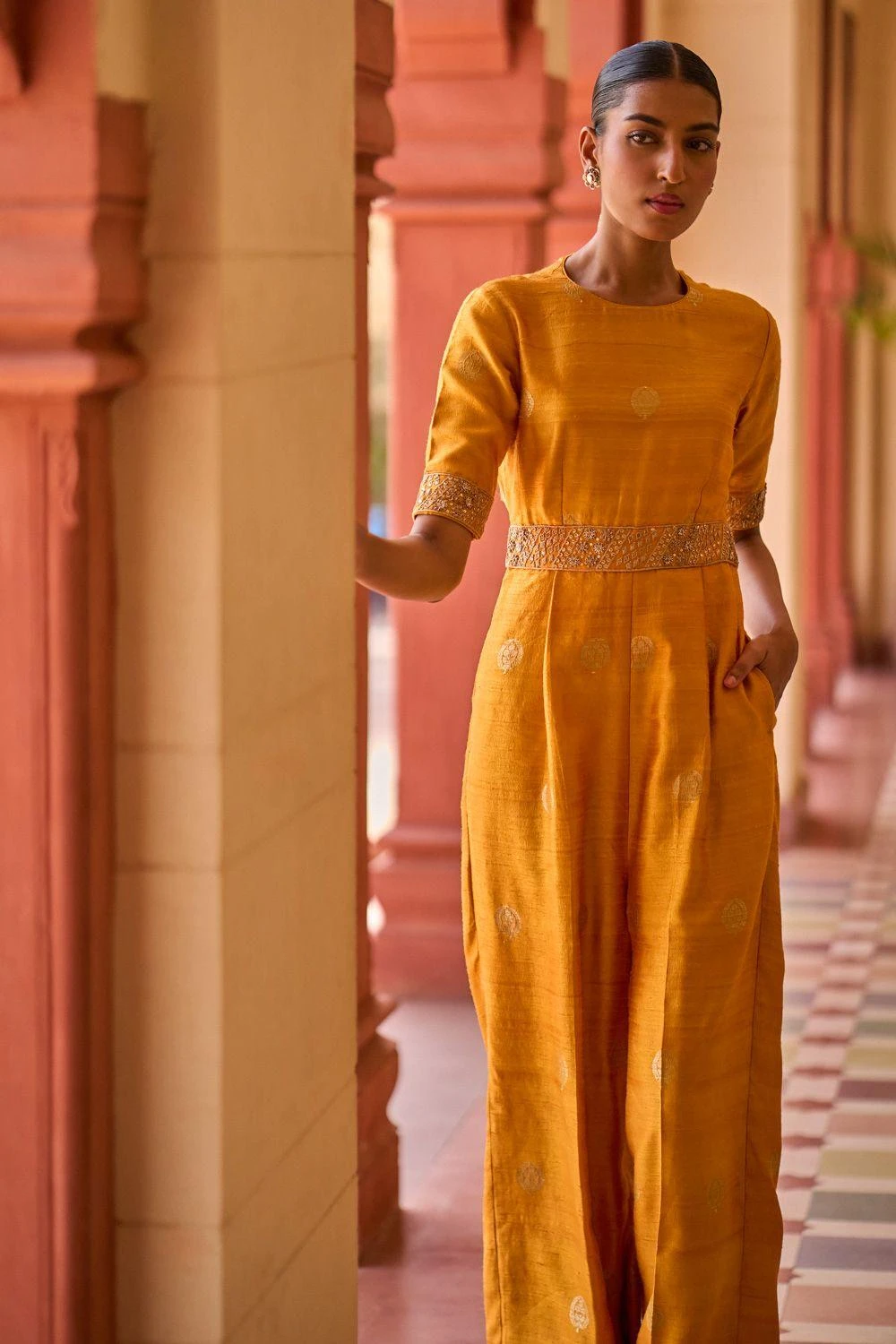 Step into opulent elegance with this embroidered jumpsuit. This ensemble is a testament to the perfect fusion of intricate craftsmanship and modern sophistication, setting the stage for a remarkable look.