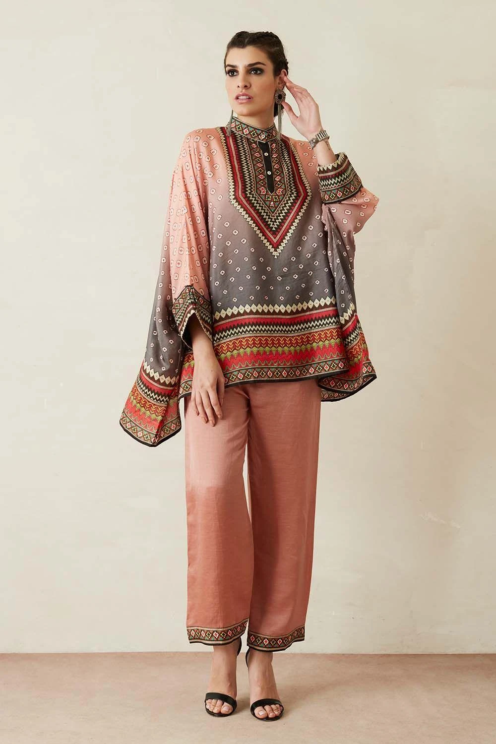 This versatile pink ombre pink top has contrasting print details on the hem, yoke & cuffs. This style is comfortable & easy to wear.