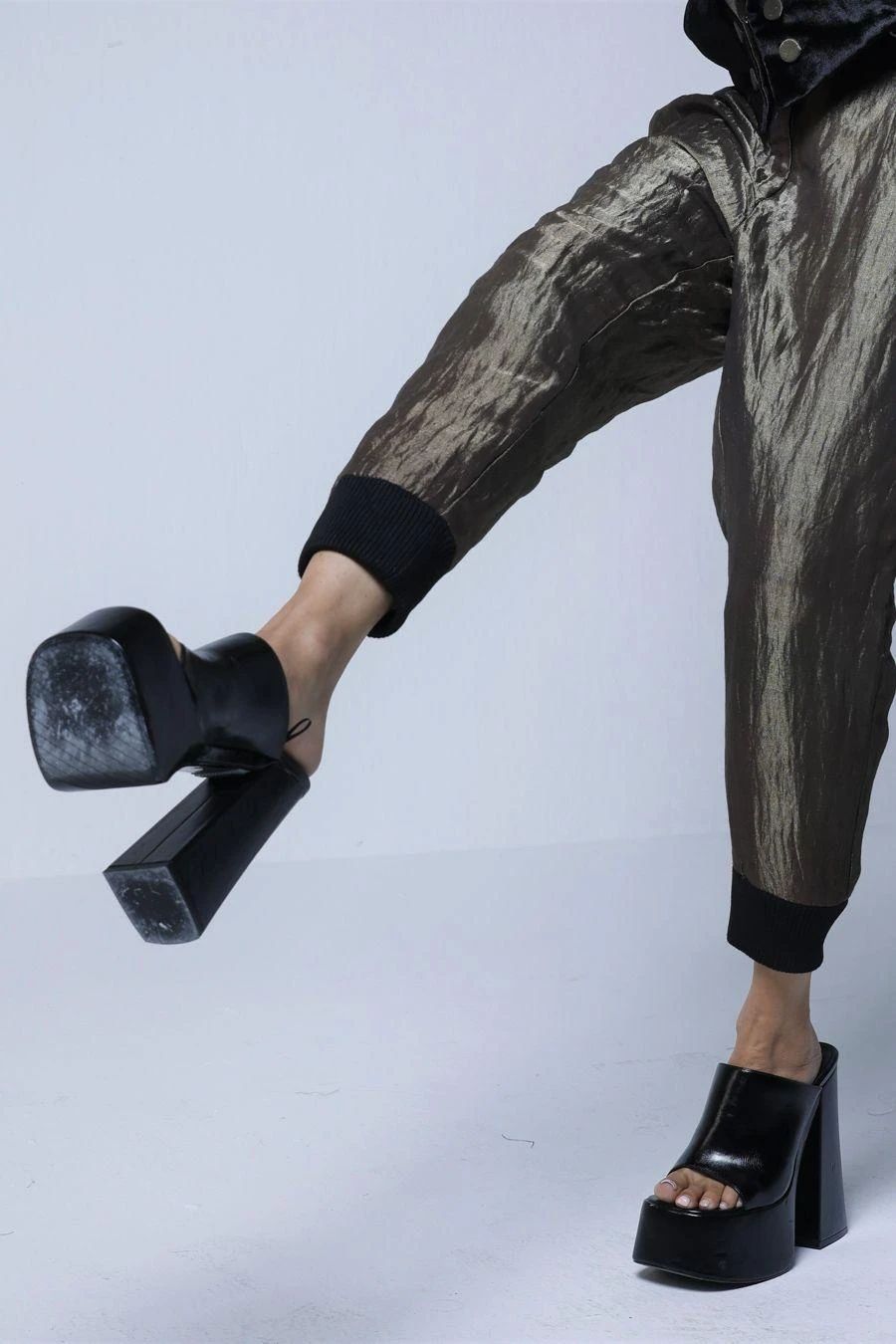 Crafted in handloom tissue, these silver grey jogger pants feature rib knit details. Pair it with a black sequinned top from the collection to complete the look.