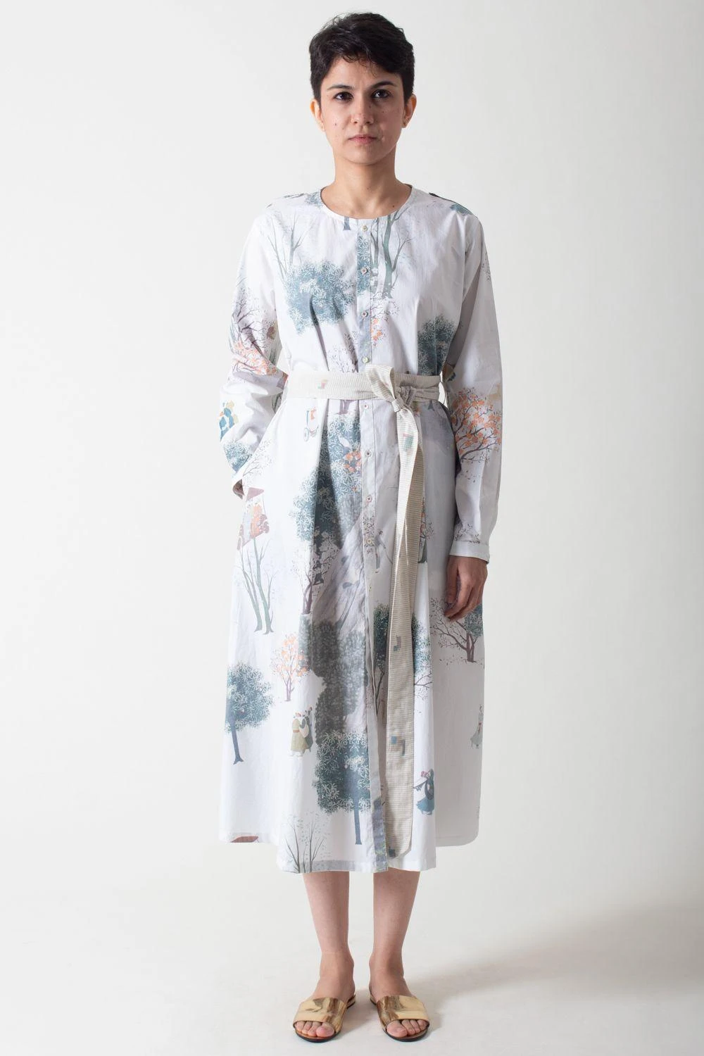 SUKETDHIR White Printed Poplin Shirt Dress