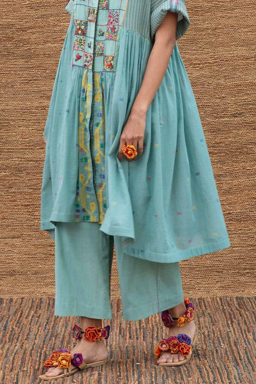 These blue hand-spun cotton pants are a literal summer essential. These can be worn at home or away, as you like it. It features an elastic waist at the back & drawstring at the front for maximum comfort.