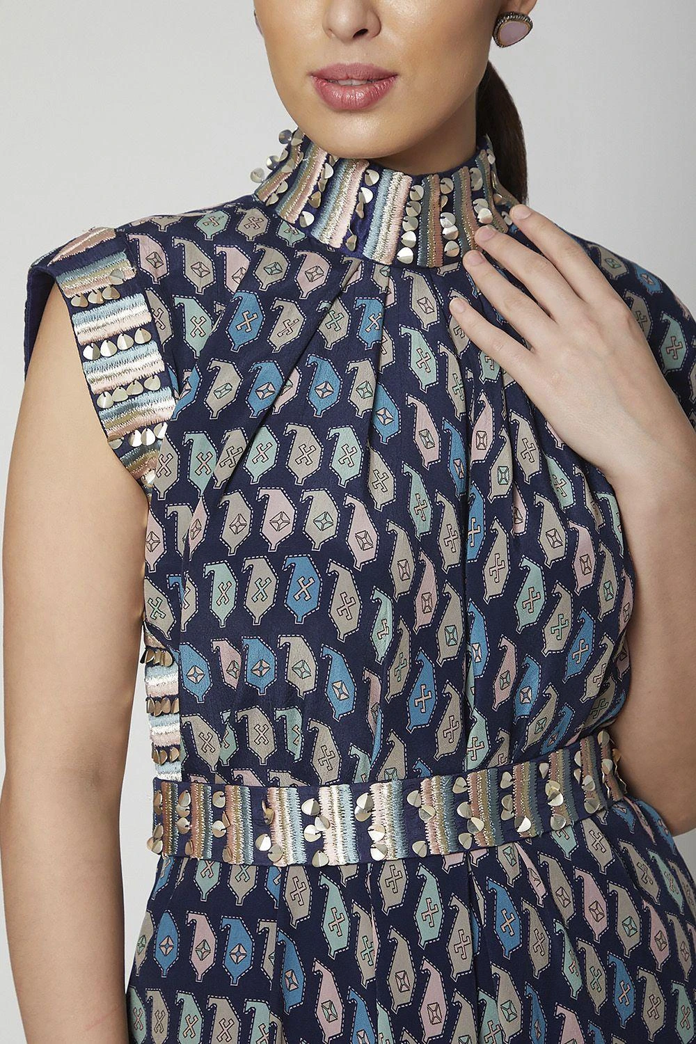 SVA Paisley Printed Draped Dress With Embellished Belt