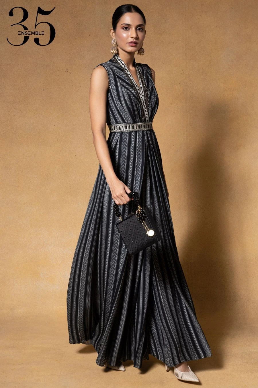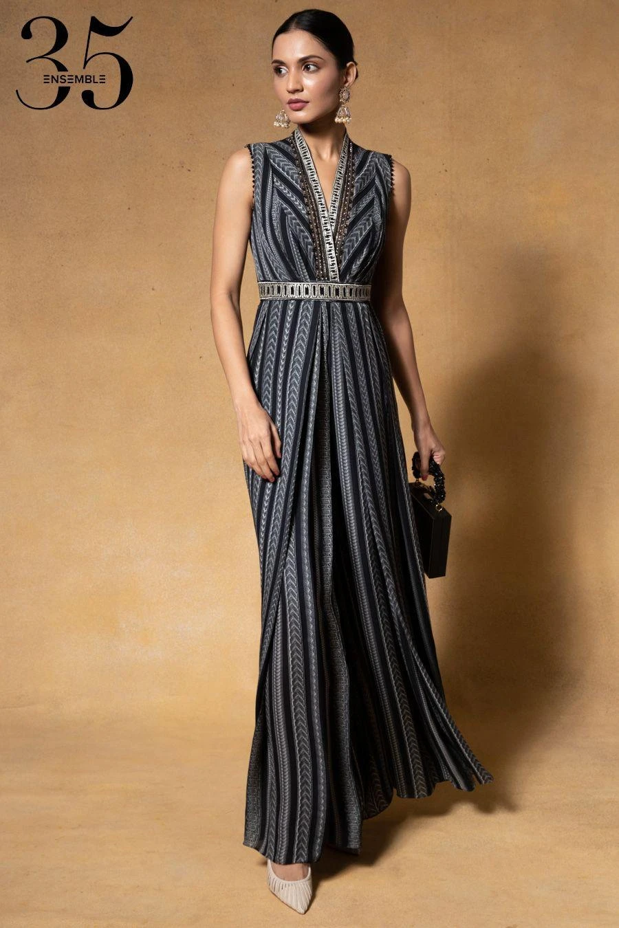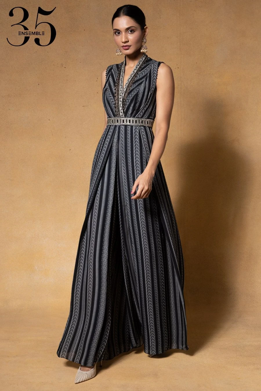 A yearlong celebration of its 35th anniversary telling the story of modern Indian fashion. This statement jumpsuit will make dressing up for a party a breeze. Crafted in georgette, this printed jumpsuit features dori embroidery.
