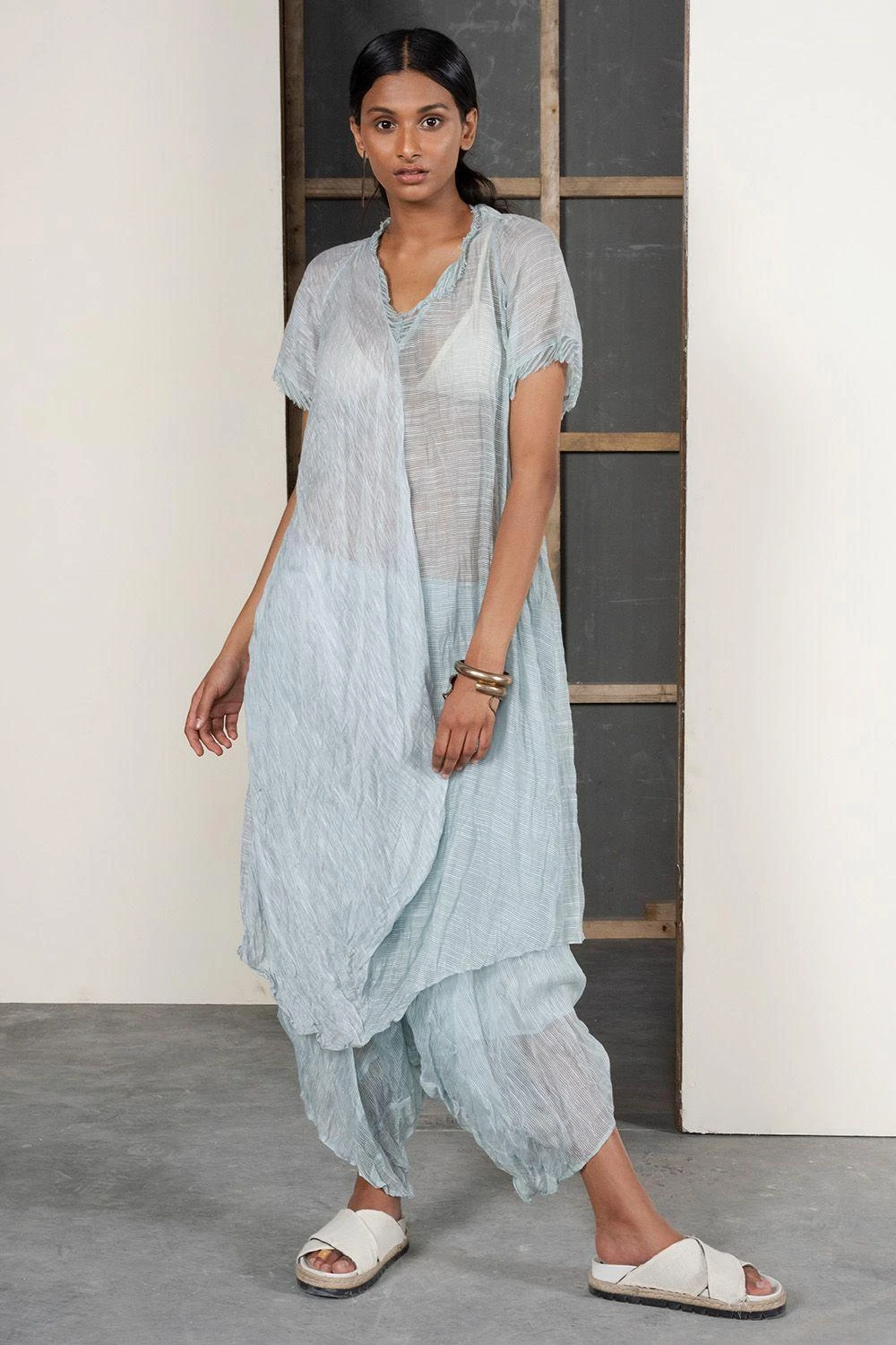 Urvashi Kaur Ciel Blue Denote Pants In Chanderi Silk