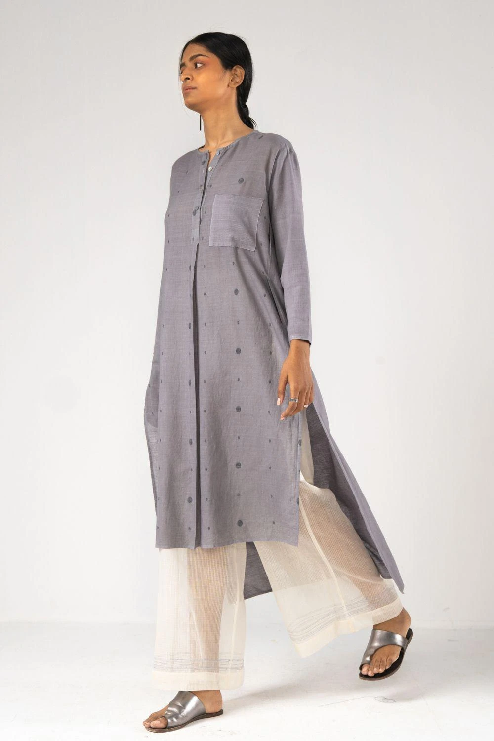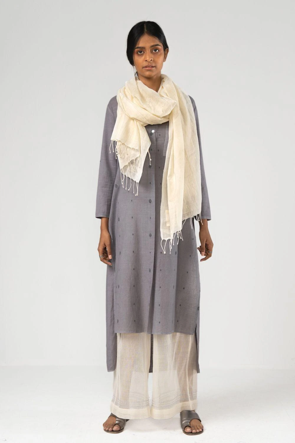 These white sheer pants are made in handwoven kota cotton with stitch line details. Keep these handy for your next beach vacation. You can also style them with your long kurtas or tunics.