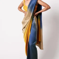 This floral coral blouse is made in luxe brocade fabric and designed in a feminine silhouette with a cut-out detail on the midriff. The brocade base is decorated with intricate zari designs.